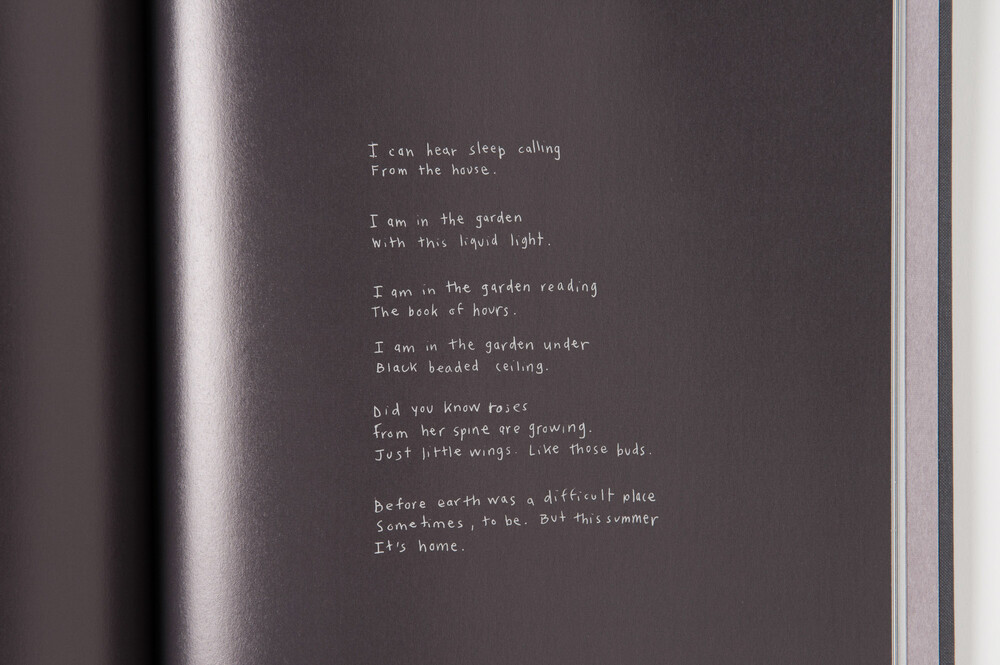 “그곳에는 순환의 과정이 있다. 성장의 리듬, 밤을 위한 낮, 계절의 변화 등 여러가지 방법으로 순환하며 공존한다. 이 책은 정원의 수확이며, 그 리듬의 일부이다. 그 과정은 너그럽고, 끊임없이 관대하며, 어둠 속에서 빛을 찾고 있다.” _안토니 배넌의 비평글 ‘Garden for Amanda’