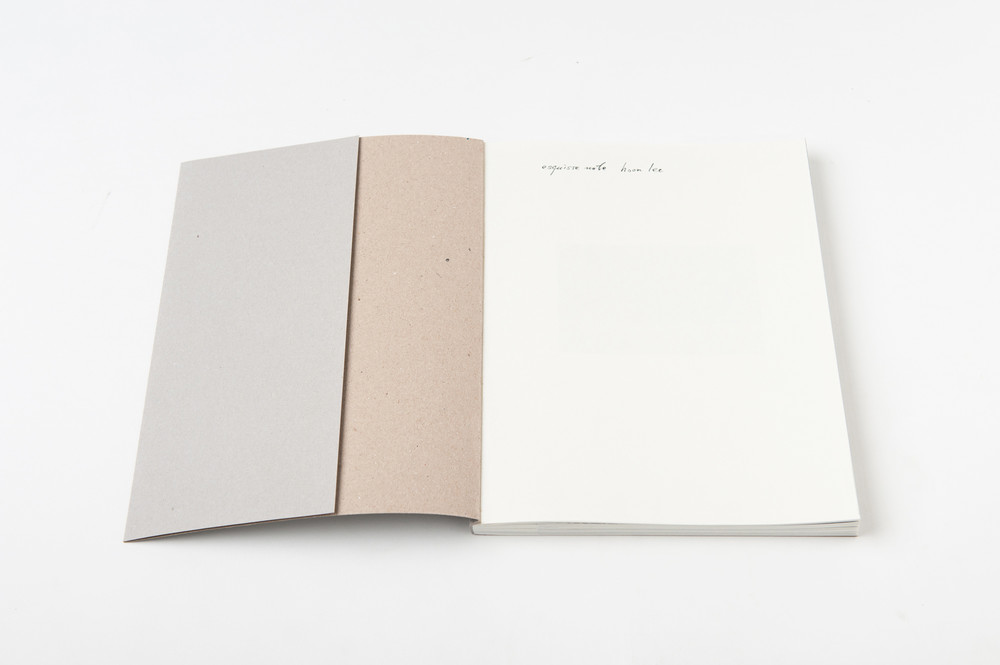 훈리의 「에스키스 노트esquisse note」에는 방치된 도시의 골목길에서 발견한, 거처할 곳 없이 떠도는 하찮은 것들의 흔적들이 사진과 드로잉으로 담겨있다. 먹, 물, 침을 사용하여 얇은 종이, 나무조각, 연필 혹은 손가락으로 드로잉을 해가는 그의 방식은 한국화에서 선과 점을 찍는 행위를 통해 형상의 정신이나 본질을 포착하려는 시도와 유사하다. 그가 ‘눈 드로잉’이라고 부르는 사진과 드로잉은 모방을 위한 수단이 아닌 발견으로 존재한다. 이 책은 보는 것과 보이는 것의 경계를 흐리게 하며, 분리된 사물 사이의 연결을 찾고 통일하는 새로운 시각적 방법을 제시한다. 흘러가는 대로 흩어진, 예견치 못한 즉흥적인 상상으로 구성된 공간의 에스키스 노트이다.