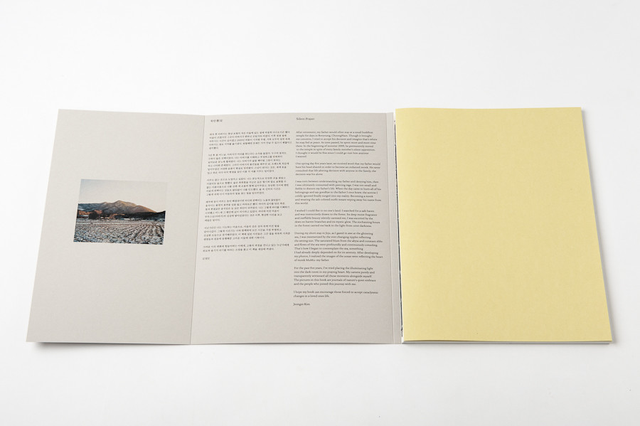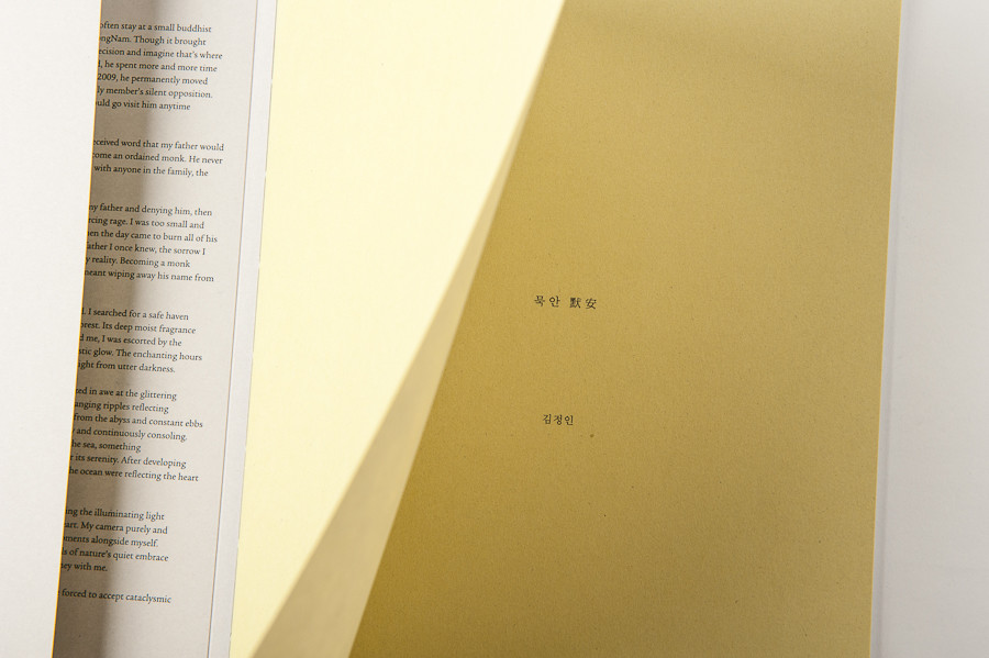 『묵안』은 작가의 특별한 상실의 경험으로부터 시작된다. 어느 날 가족을 떠나 불교에 귀의한 아버지의 부재를 계기로 작가는 관계와 사랑, 영적 감각의 탐구와 치유를 위한 침묵의 시간을 맞이하게 된다. 이후 5년간 사진기를 들고 소박하고 투명한 방법으로 풍경과 대상을 기록하였고, 시간이 흘러 남은 시각적 흔적들은 작가의 시선을 투영하고 있음 발견했다. 작가는 그 이미지들을 다시 뒤섞고 연결하는 과정 가운데 사진 속 피사체의 존재를 다시 확인하고, 과거와 현재를 마주보고 미래를 잇는 치유의 열쇠를 발견하게 된다. 이 작업은 은유적 사진 이미지의 시퀀스를 통해 책으로 구현되어 삶과 관계를 겪어나가는 인간의 고통과 회복의 영감을 전하고 있다.