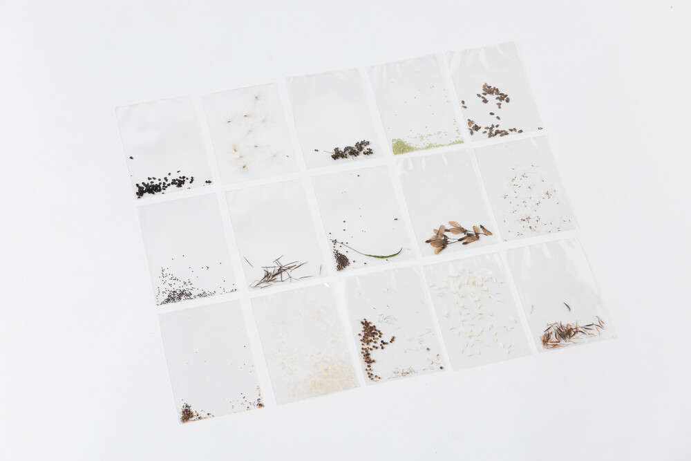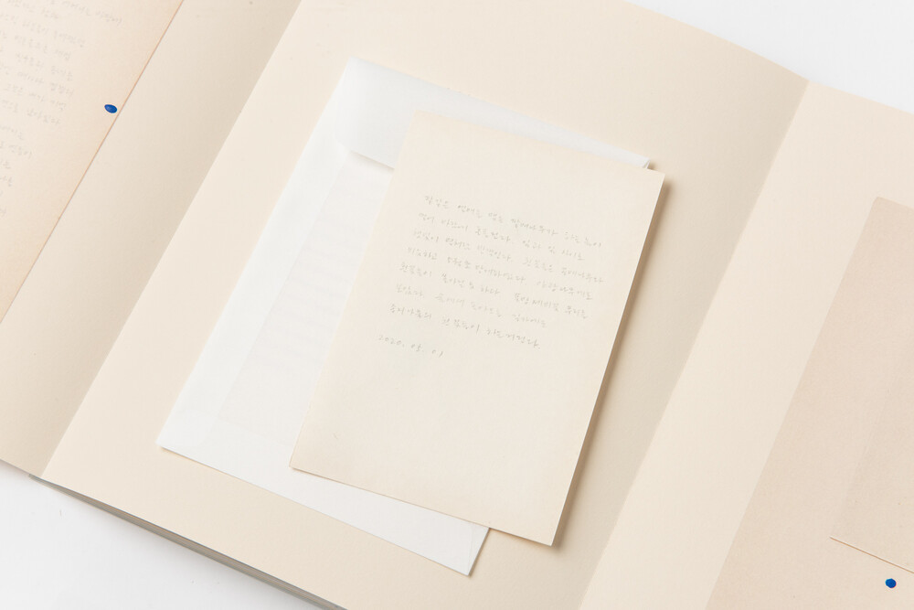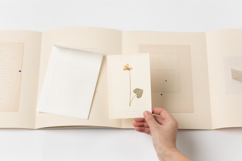 * 작가가 수집한 야생의 씨앗, 고비사막의 모래, 울트라마린 안료 그리고 들꽃으로 만든 압화와 자필 메모가 포함되어 있습니다.