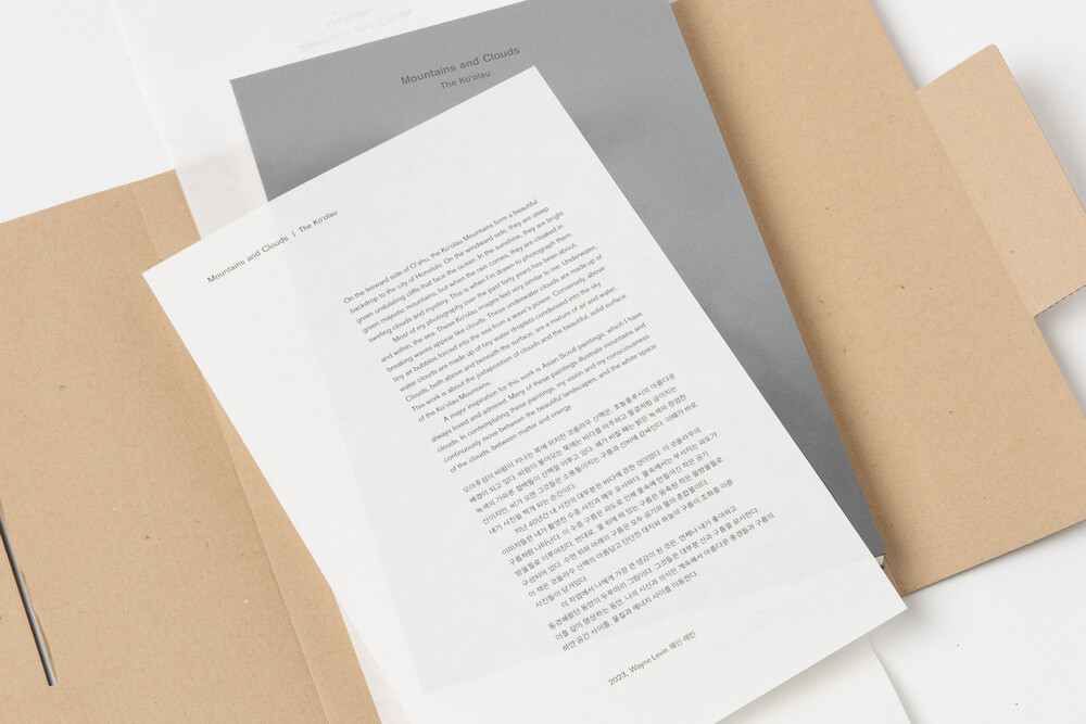 이 책은 작가가 거주하는 하와이섬의 산과 그 위의 구름을 찍은 사진들로 구성된 화첩 형식의 책이다. 지난 40년간 바닷속 풍경과 생물들을 찍은 작가에게 바다와 대지는 물과 공기로 연결된 하나의 풍경이다. 작가는 산과 구름을 담은 동양의 풍경화에서 언제나 많은 영감을 받았다고 한다. 동서양의 경계와 하늘과 땅의 경계 너머 하나가 된 그의 풍경 사진은, 보이지 않는 에너지와 자연의 물질 순환에 대한 근원적인 질문을 던지고 있다. 구름의 흰 여백과 아름다운 산이 조화롭게 펼쳐지는 이 책은 300권 한정 수제본 방식으로 제작되었다.