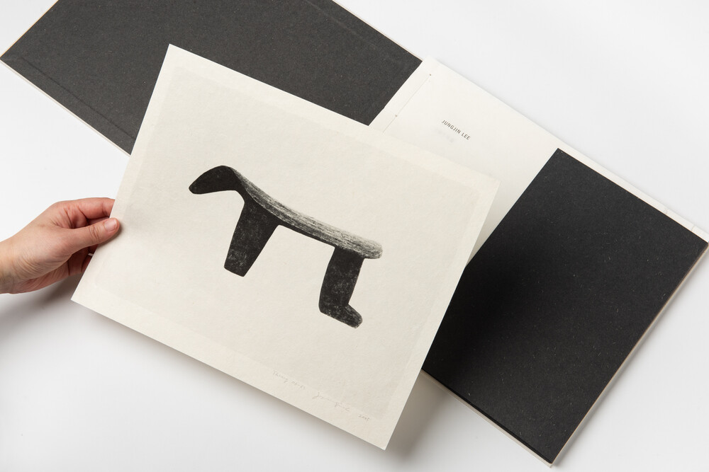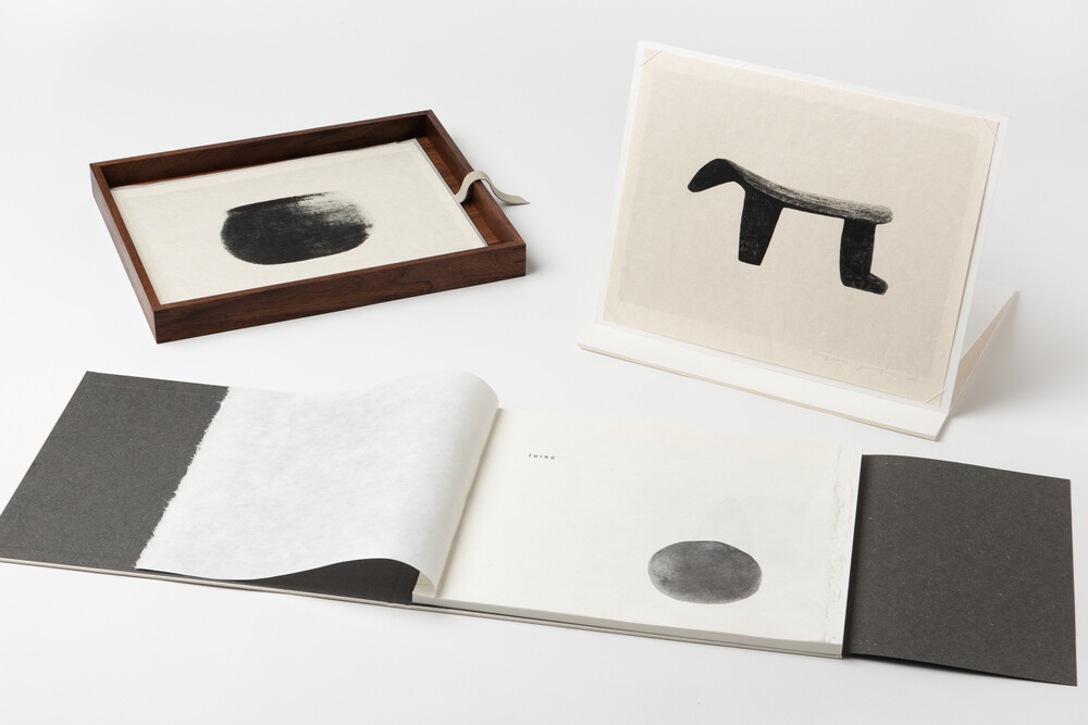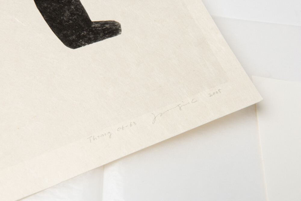이정진 작가의 ‘Thing’ 연작은 일상 사물을 확대 촬영한 사진을 직접 제작한 한지에 흑백으로 프린트한 작품이다. 작가는 명상적 촬영 과정을 통해 대상의 본질만을 남기고 모든 부수적인 요소를 비워간다. 배경과 그림자도 제거되며 형태는 단순화되는 대신 자신의 감정과 깊은 내면의 메시지가 빈 공간을 채우고 있다. 특히, 먹빛 사물 주변의 흰 여백은 동양화나 서예의 ‘비움’의 미학을 반영하며, 이 비움을 통해 사물은 새로운 의미를 얻는 것이다. 작가는 바라봄을 통해 본질을 찾아가는 과정과 존재를 탐구하고 표현하는 예술적 역할에 대한 질문을 던지고 있다.‘Thing’ 시리즈는 풍경 위주의 작업을 보여주는 작가의 작품세계에서 독특하고 고유한 위치를 차지하고 있다. 시간이 흘러도 변하지 않는 작업의 생명력이 20년이 지난 지금 한지와 수제 전통 제본을 통해 기품 있는 오브제로 탄생했다. 작가의 더미북이 닻과의 협업을 통해 한국적 재료와 물성을 지닌 ‘Thing’이 된 이 책은, 그 자체가 아름다운 존재감을 지닌 아티스트북이다.