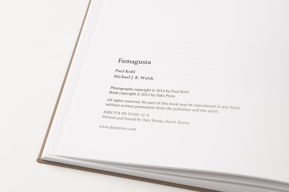 조금 묘하게 보이겠지만, 이 프로젝트의 기원은 8000 킬로미터 떨어진 싱가포르의 파마구스타로부터 시작됐습니다. 그리고 완전히 다른 분야의 학문에 흥미를 가진 두 교수의 콜라보레이션결과입니다. 십 년 넘게 파마구스타에 살고 있고 교수이자 역사학자로 활동하는 마이클 월시, 그리고 최근 일본, 인도, 포르투갈에서 작업하며 흑백사진으로 국제적인 평판을 쌓아가고 있는, 게다가 키프로스 섬에 가본 적이 없는 폴 콜. 이 둘의 조합은 강렬한 매력을 가진 동쪽 지중해에서 발견하게 될 특별한 무언가를 아주 잘 이끌어낼 수 있을거라 느껴집니다. _'Famagusta' 서문에서 발췌