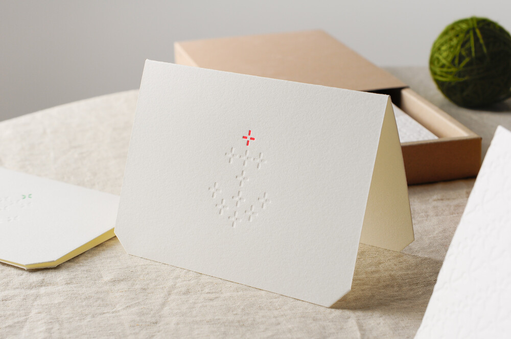 닻 모티브로 제작된 수제 레터프레스 카드세트입니다.