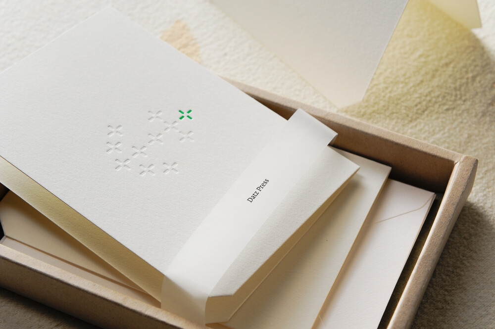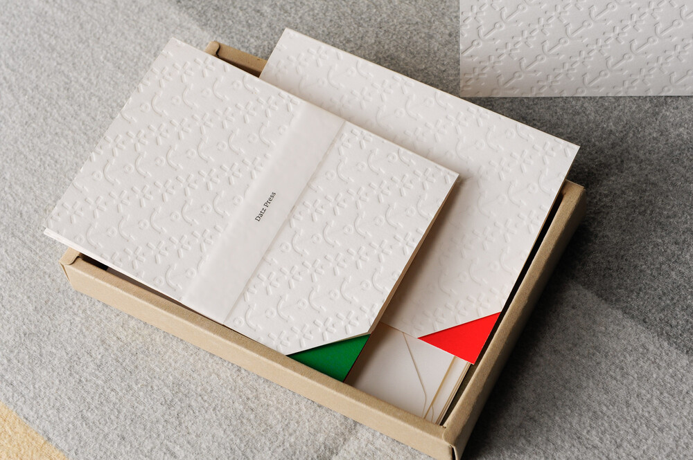 카드 4종과 봉투가 종이 박스에 함께 구성되어 있습니다.